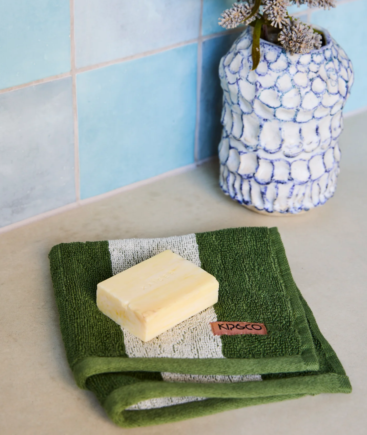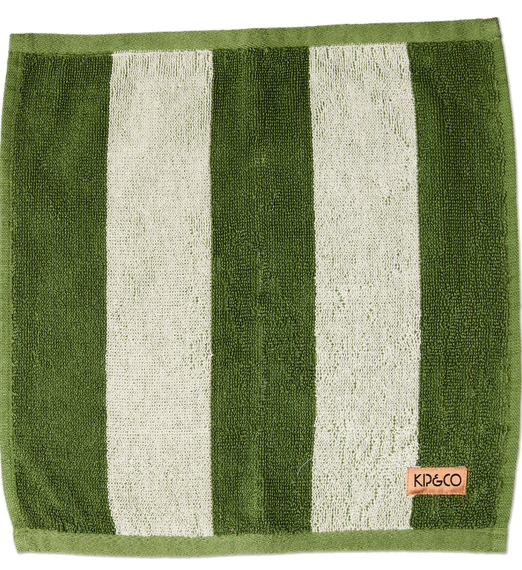 Give your glow-up routine a little extra oomph with the Moss Stripe Terry Face Washer by Kip & Co. Made from soft, absorbent 100% cotton terry, it’s gentle on skin but big on personality, featuring a classic moss green and creamy white chunky stripe to bring a splash of fun to your daily freshen-up.