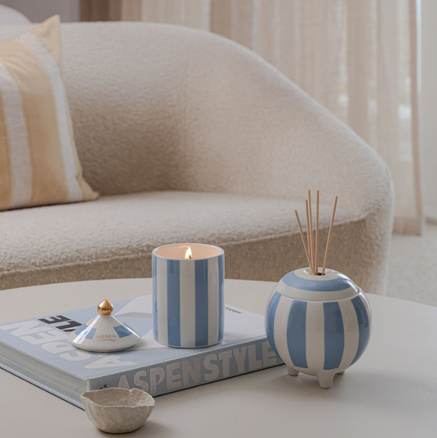 A hand-poured, custom-designed ceramic candle that fills any space with the zesty fragrance of Juniper Berry & Citrus Spritz. Featuring bold stripes and luxe foiling, these ceramics are designed to be re-used long after the candle is finished.