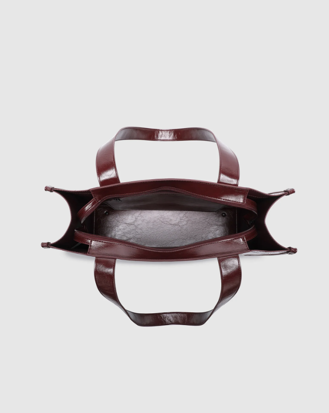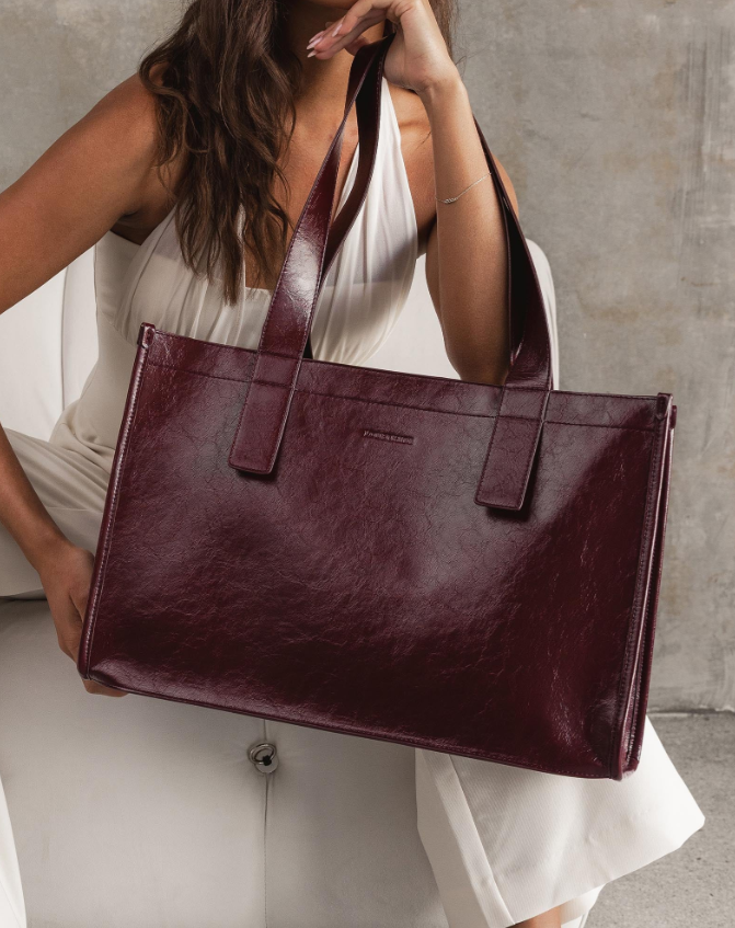 The Riley Burgundy Patent Tote Bag by Louenhide redefines workday polish with a modern edge. A versatile business tote crafted for effortless sophistication, she pairs sleek structure with understated shine in crinkle patent vegan leather. Riley Burgundy Patent’s clean lines and considered proportions lend a contemporary touch to tailored dressing.