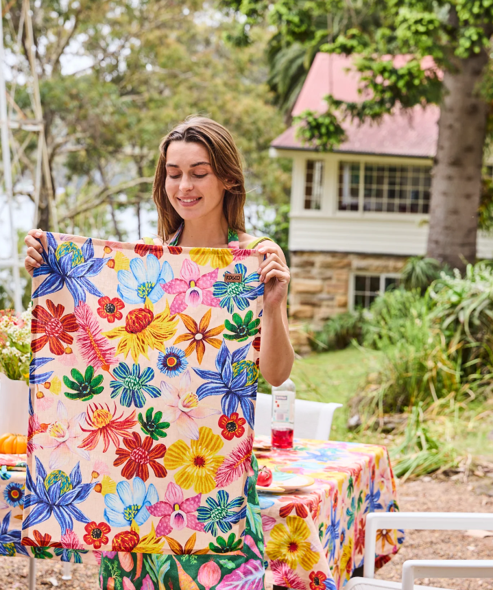 Make drying up a delight with the Kip & Co - Wild Flowers In Bloom Tea Towel, bursting with bold, hand-drawn florals in vibrant pinks, blues, and daisy yellows on a peachy sorbet base. Whether you’re wiping spills or wrapping warm scones, this linen-cotton blend floral favourite brings a hit of happy to your everyday kitchen rhythm.